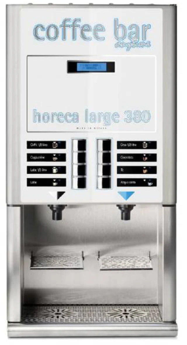 Simple operation, the Horeca 380 utilises soluble coffee (freeze-dried), hot chocolate powder and milk creamer. With 8 coffee selections and an output of 500 cups per day, this machine will fit any medium to large sized business.